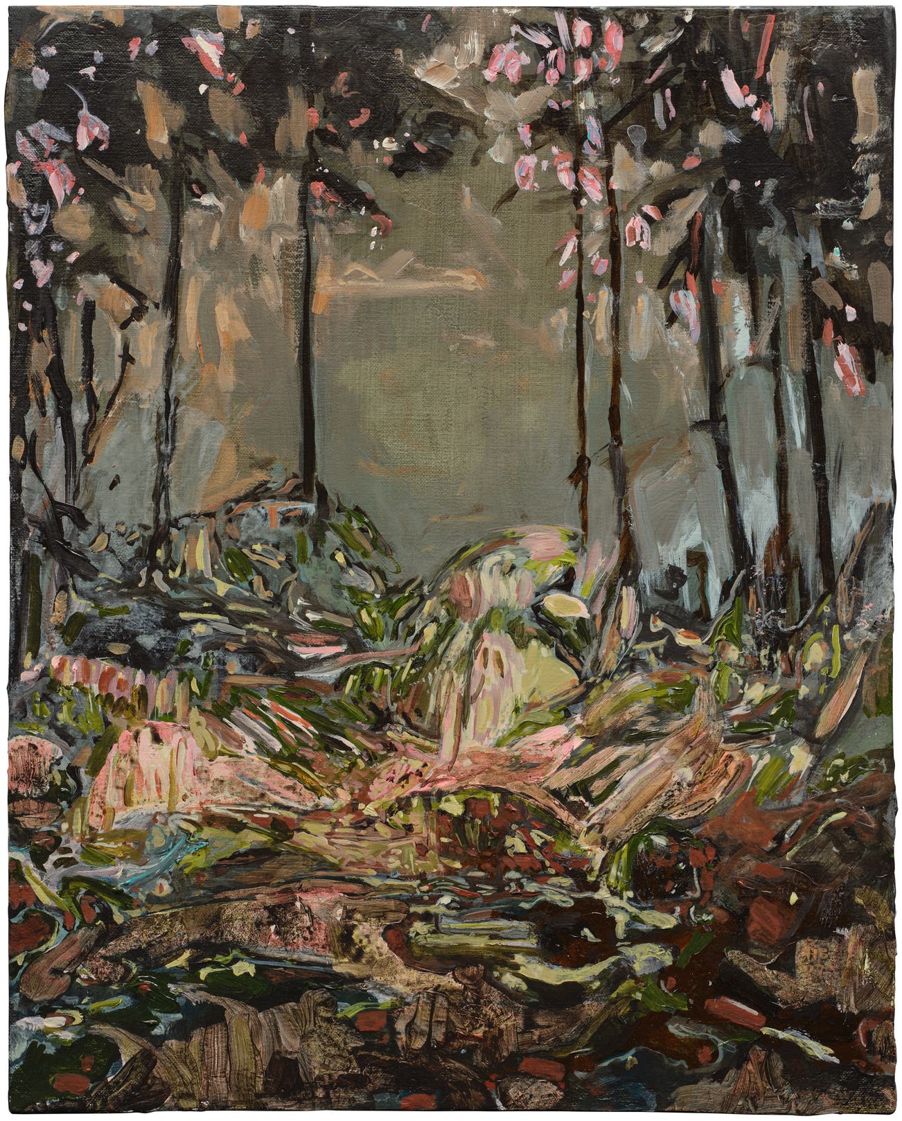 Hernan Bas (b.1978) is a contemporary American painter who lives and works in Miami. His paintings are influenced by the romantic and decadent legacies of 18th and 19th century art, literature, poetry, and religion. These influences result in canvases that are complex and highly detailed and often portray characters, typically young male figures, nestled among flora and fauna.