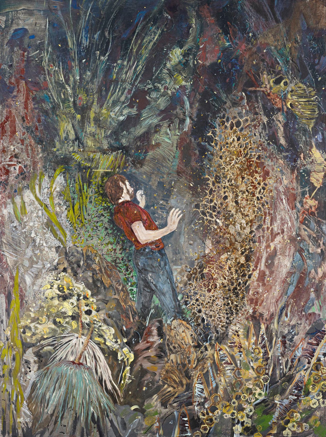 Hernan Bas (b.1978) is a contemporary American painter who lives and works in Miami. His paintings are influenced by the romantic and decadent legacies of 18th and 19th century art, literature, poetry, and religion. These influences result in canvases that are complex and highly detailed and often portray characters, typically young male figures, nestled among flora and fauna.