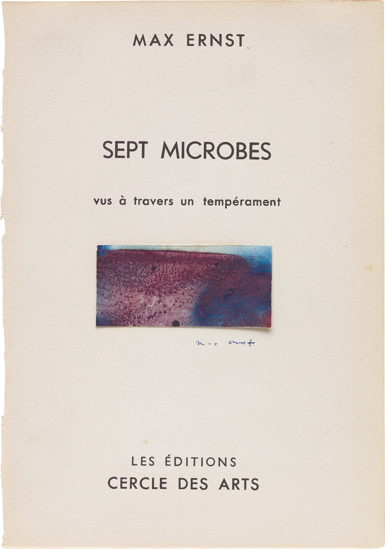 水粉 卡片 裱於馬克斯.恩斯特書籍《七種微生物》封面頁