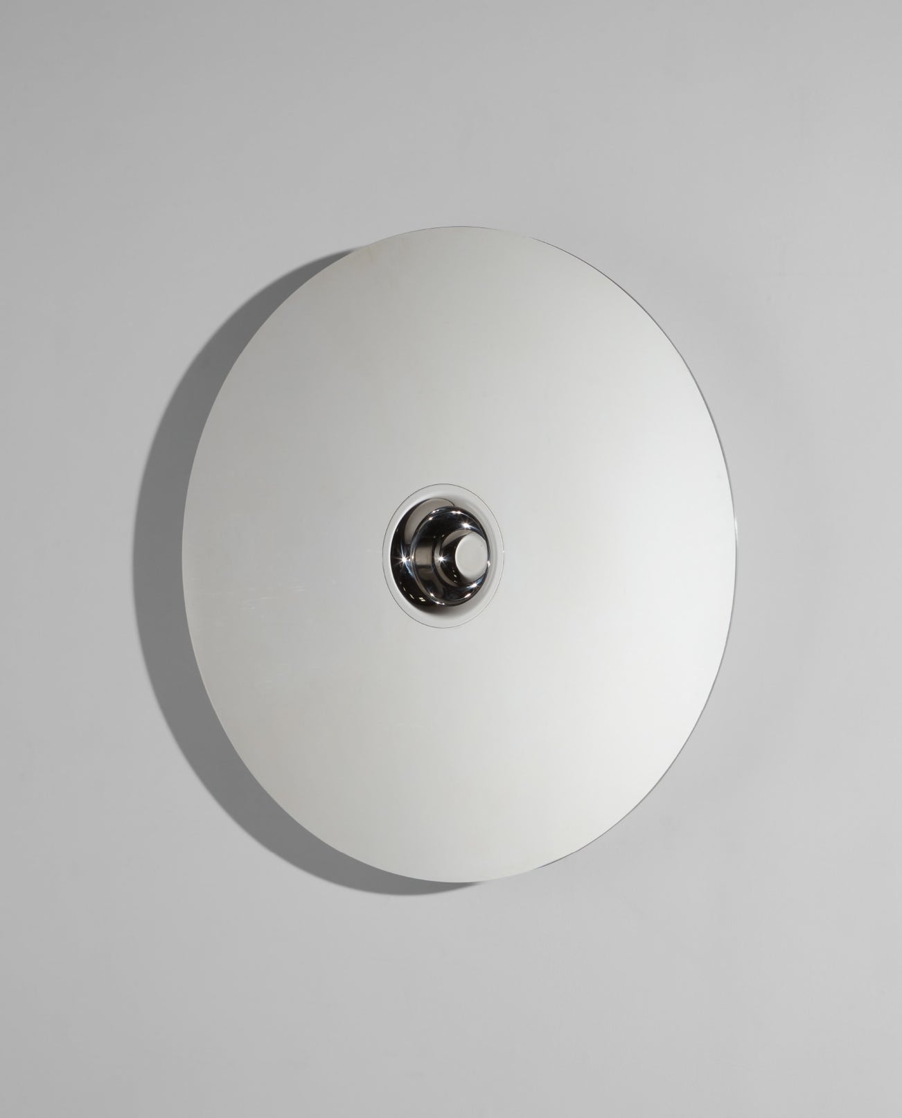 Much of Marc Newson’s work has been informed by his fascination with absence and presence: “Both my sculptural work and the production furniture have always had as much to do with what is not there as what is there—the voids, the interior spaces, the things that you don’t see.” While the "Black Hole" mirror is seamlessly constructed out of polished stainless steel, reflected light hitting the depression at the center of the piece creates the illusion of very deep space.