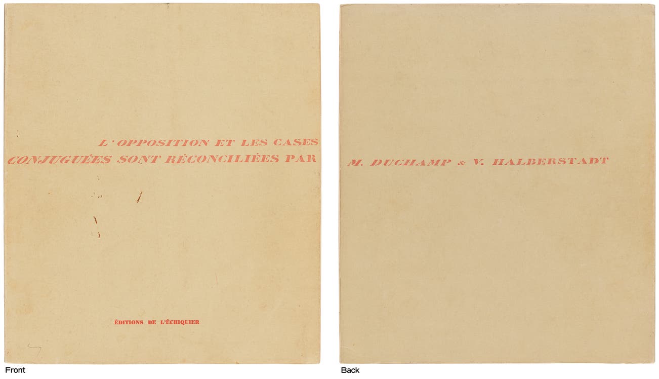 馬塞·杜尚與維塔利·哈爾伯施塔特合著的國際象棋專著平裝本全書,封面及版式由馬塞·杜尚親自設計(裝訂如出版所示)