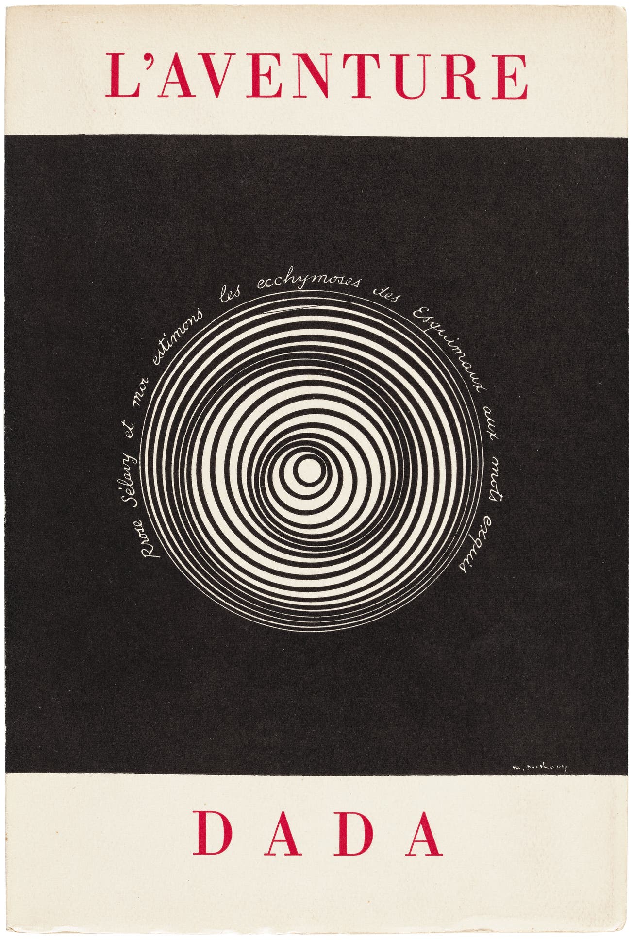 由巴黎Galerie de l'Institute為1957年3月15日至4月12日展覽《達達回顧展:1916–1922》出版,法國印製。