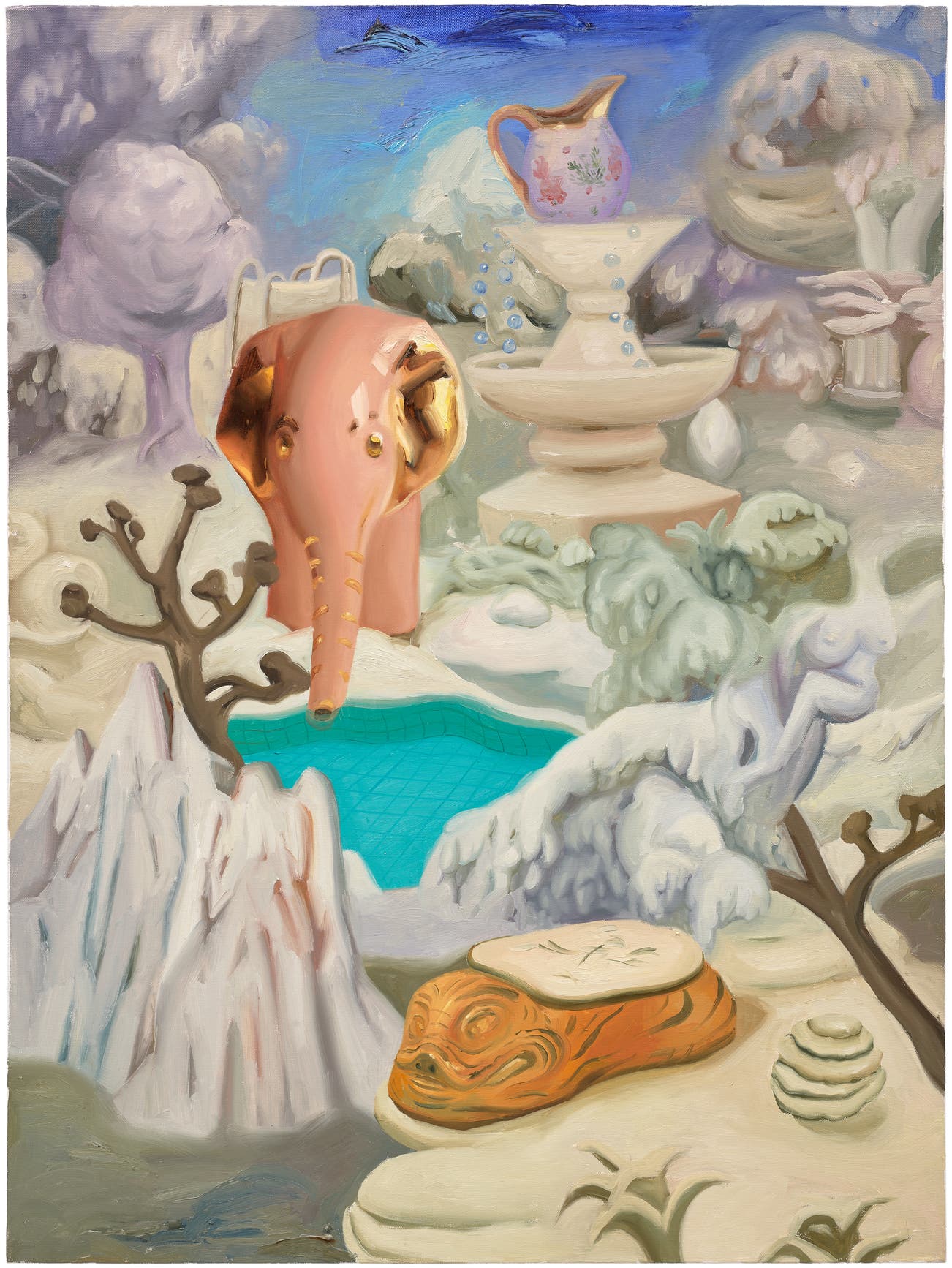 款識:Dominique Fung DOMINIQUE FUNG BROOKLYN, NY 2018 SNOW AT THE SANCTUARY(畫背)