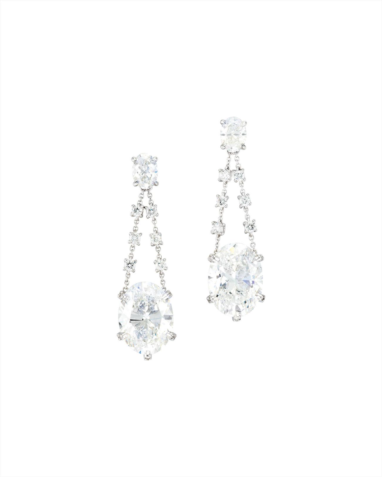 Two oval brilliant-cut diamonds, 5.02 and 5.01 caratsDiamonds in the surmounts, totalling approximately 1.30 carats18 karat white gold附 GIA 證書