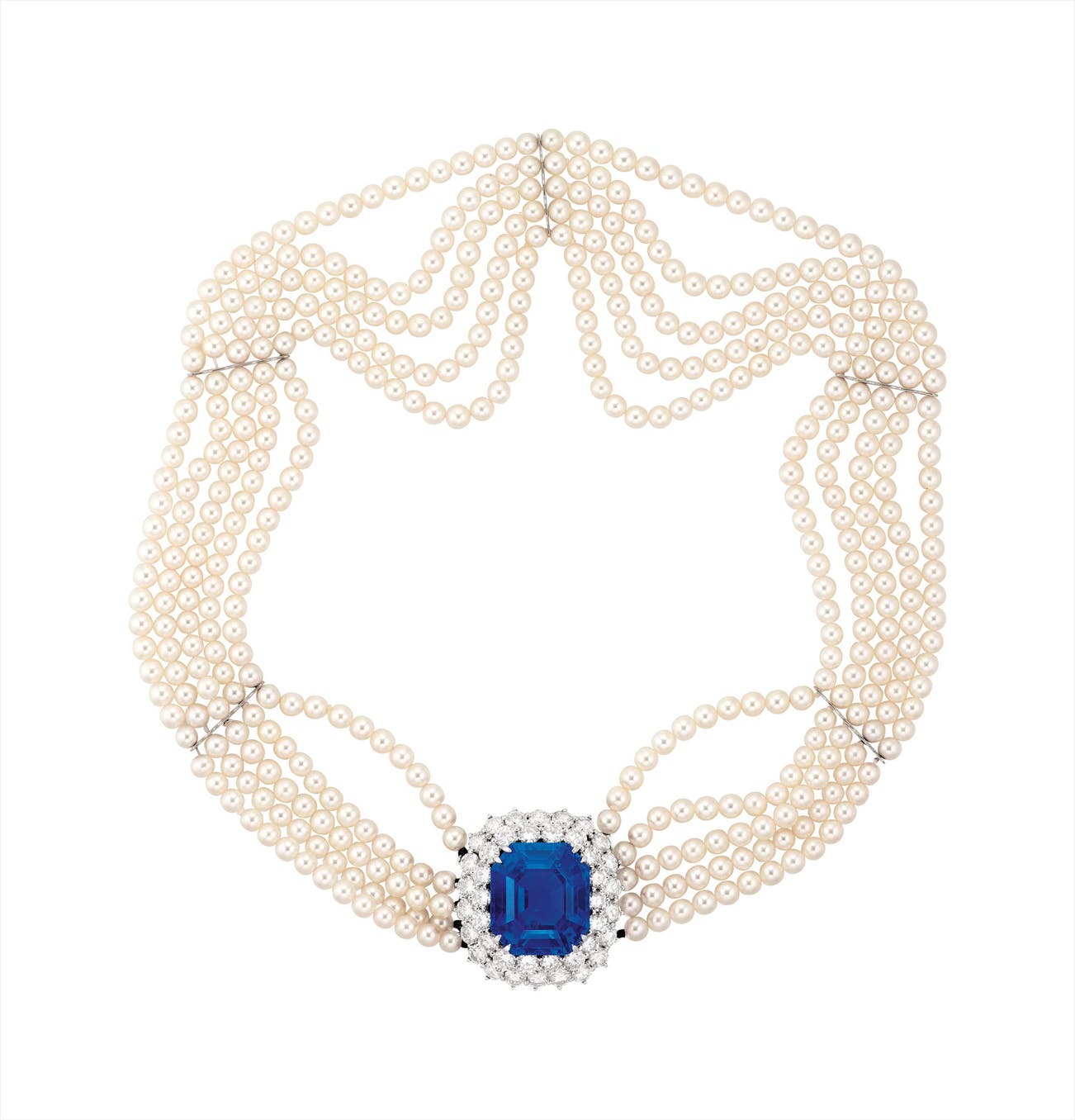 Cultured pearls on necklace, diameter approximately 4.00 to 3.50mm18 karat white gold附 Gübelin 及 SSEF 證書<em>Sapphire pendant detachable, with retractable pendant loop </em>