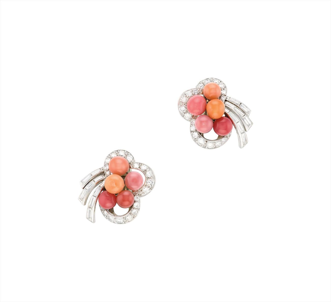 天然海螺珠配鑽石耳環, 寶詩龍, 年份約1960