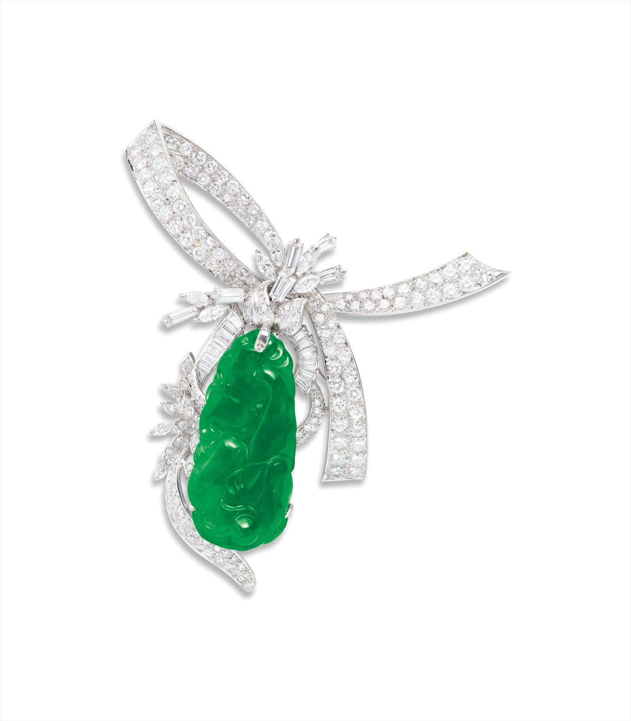 One carved jadeite, <em>measuring approximately 37.15 x 17.65 x 6.75mm </em>