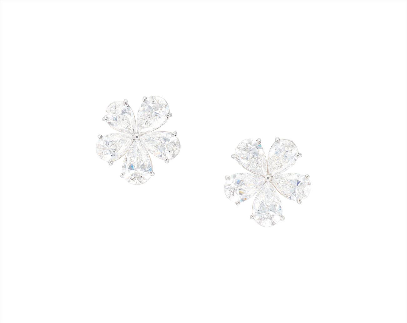 鑽石「花」耳環,梨形 D/IF 鑽石(極優打磨拋光) 共重11.12克拉