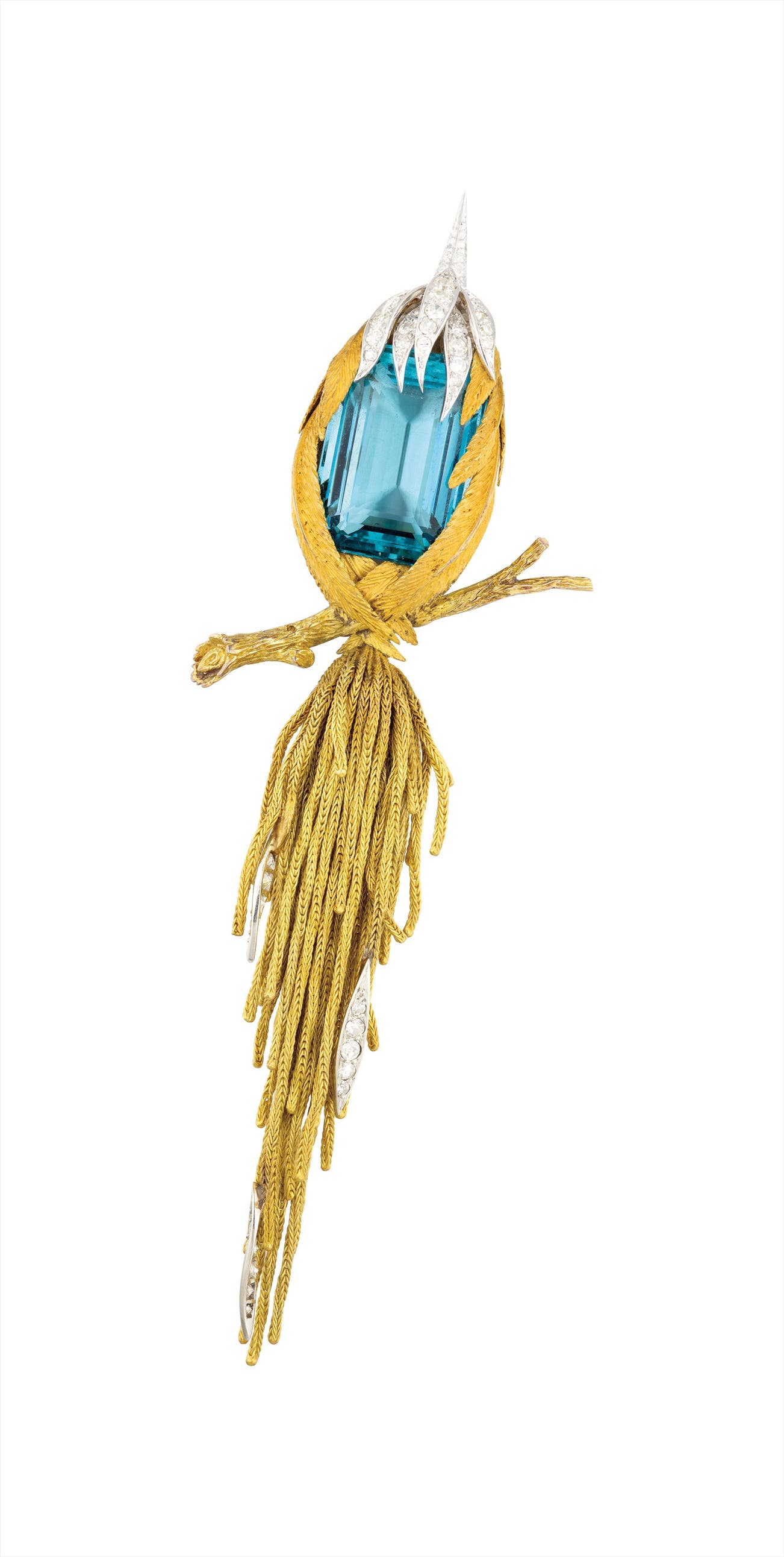 海藍寶配鑽石‘鳥’別針,Sterlé Paris