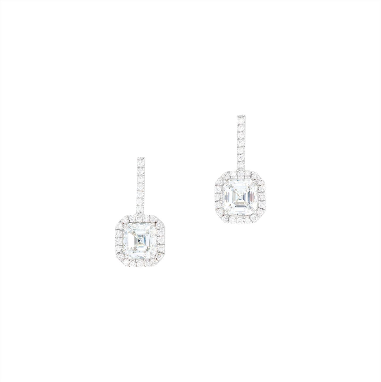 1.37克拉 G/VS1 及 1.31克拉 F/VS2 方形鑽石耳環一對, 蒂芙尼