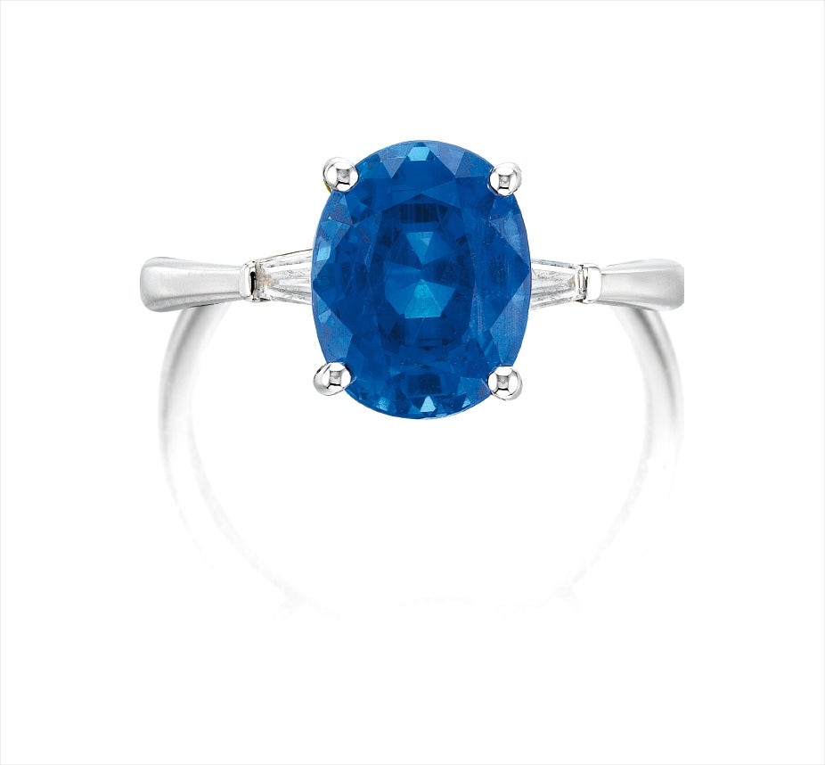 4.09克拉「緬甸」天然藍寶石配鑽石戒指, 藍寶石未經加熱處理
