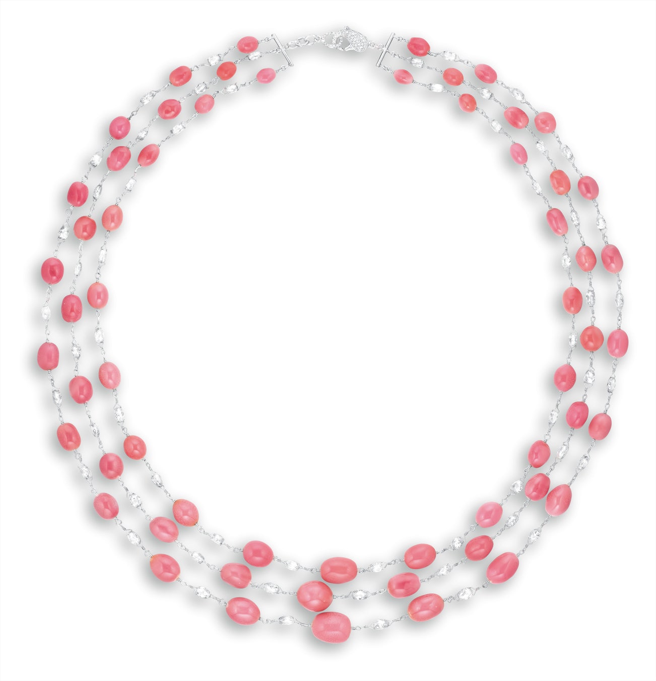 天然粉紅色海螺珠配鑽石項鏈, 海螺珠未經加工處理