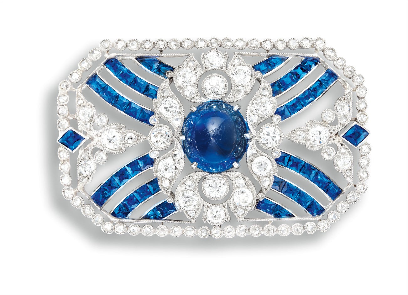 古董 5.79克拉「斯里蘭卡」天然藍寶石配鑽石別針, 約1910年, 藍寶石未經加熱處理