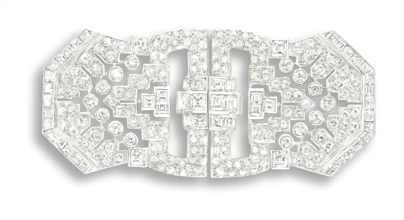 Art Deco鑽石對裝別針, 約1930年, 鑽石共重約7.50克拉
