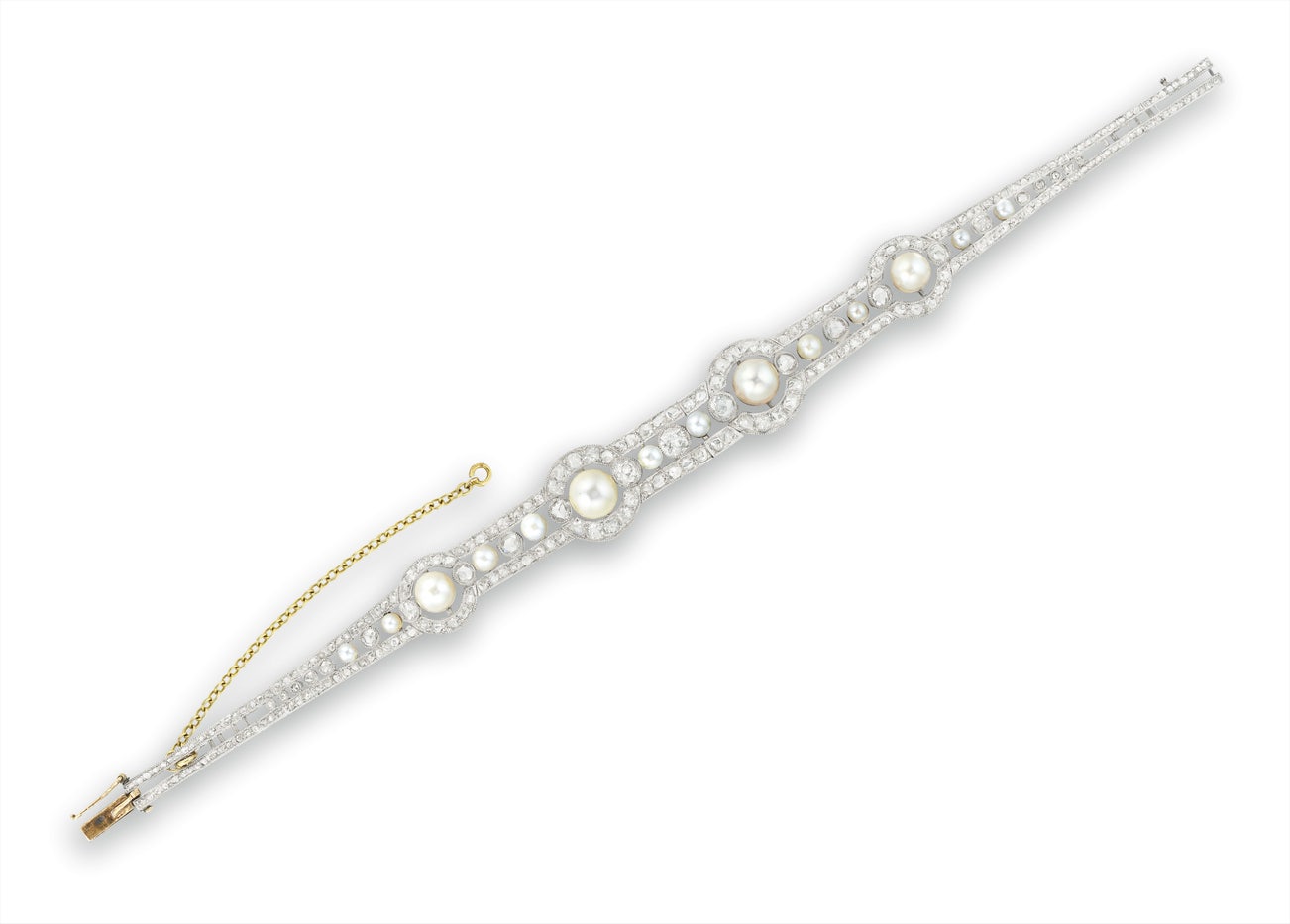 古董天然海水珍珠配養殖珍珠及鑽石手鏈/皇冠, 約1900年