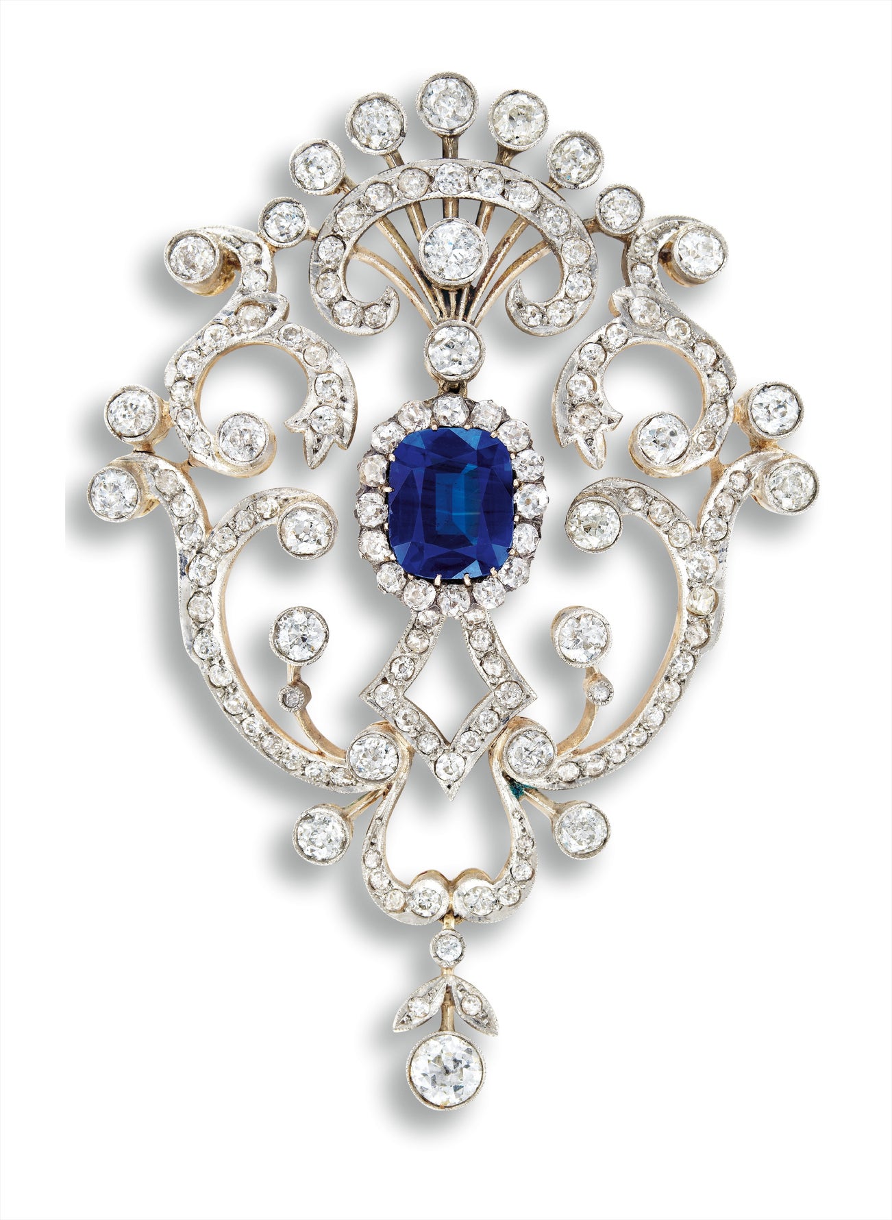 古董 5.65克拉「喀什米爾」天然藍寶石配鑽石別針, 藍寶石未經加熱處理