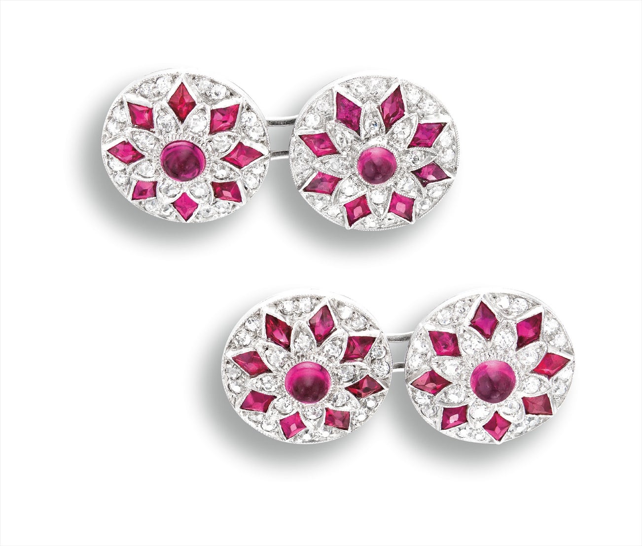 Art Deco紅寶石配鑽石袖扣一對, 約1920年