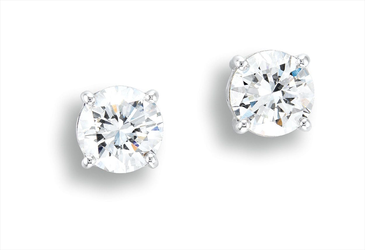 Two round brilliant-cut diamonds, 3.02 and 3.00 carats