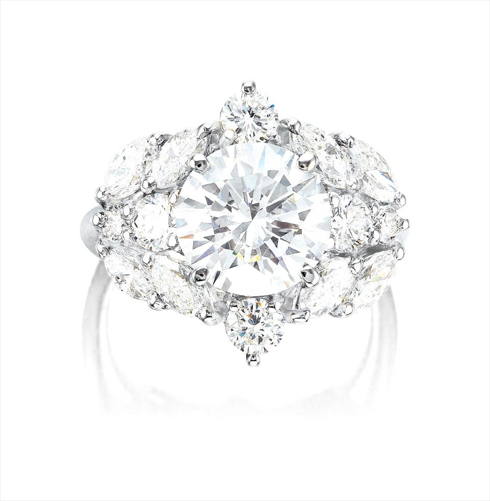 One round brilliant-cut diamond, 3.09 caratsMarquise-shaped and circular-cut diamonds on side, totalling approximately 2.10 caratsPlatinum附 美國GIA 證書