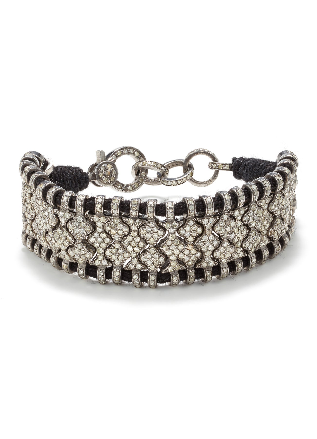 A Diamond, Silver and Cord Bracelet
