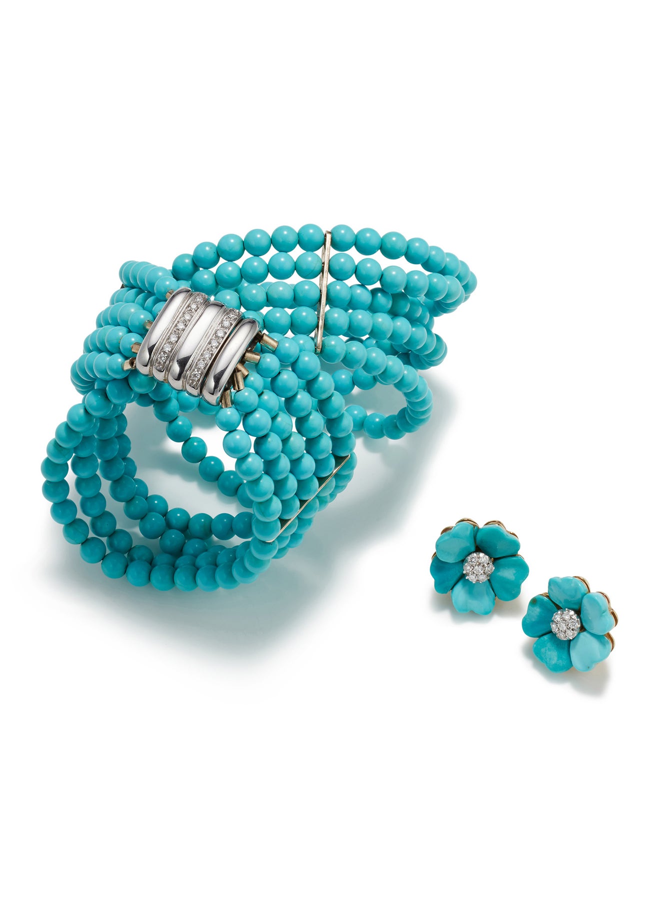 18K white and yellow gold, necklace length approximately 12.50 inches, earrings approximately 0.75 inch
