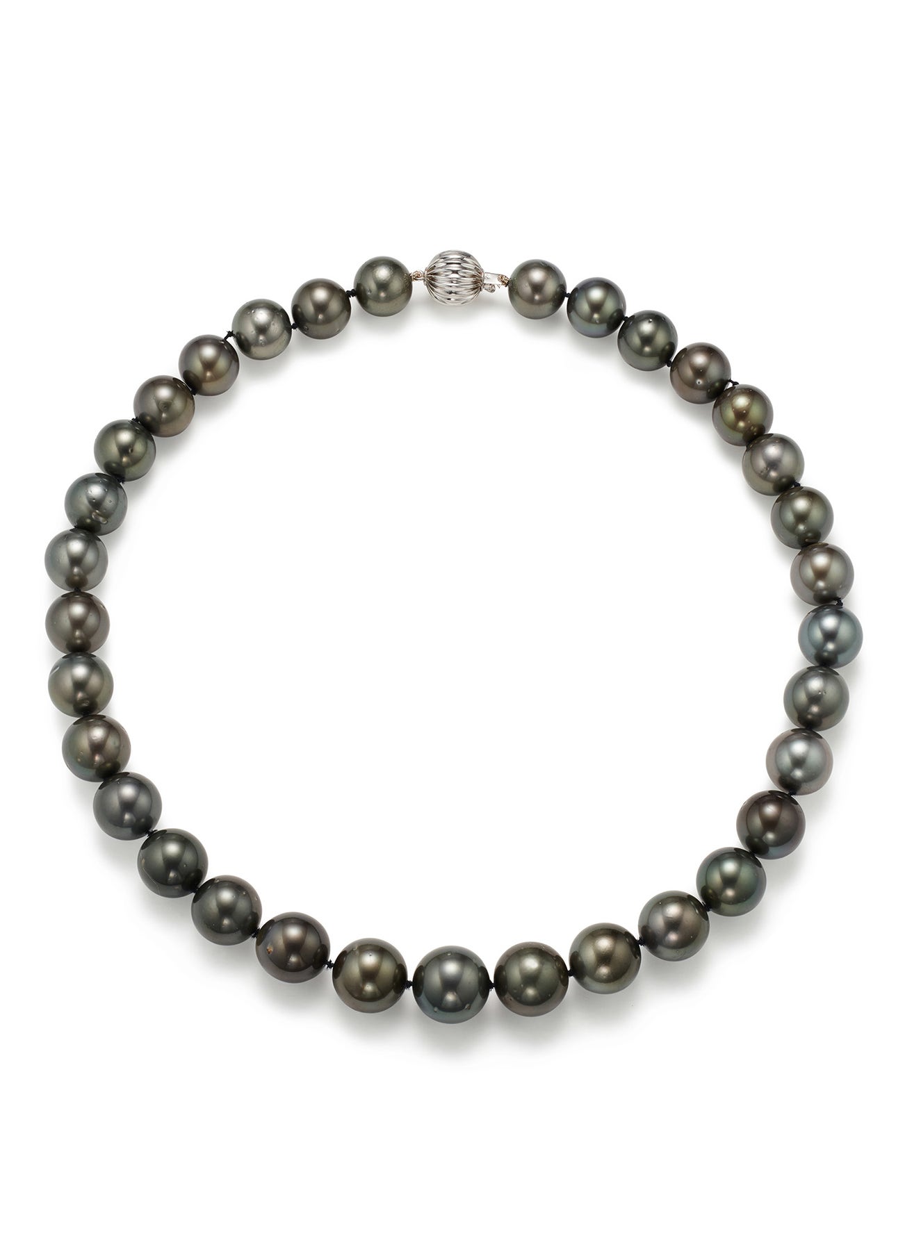 Round cultured Tahitian pearls, measuring approximately 12.00mm to 14.50mm