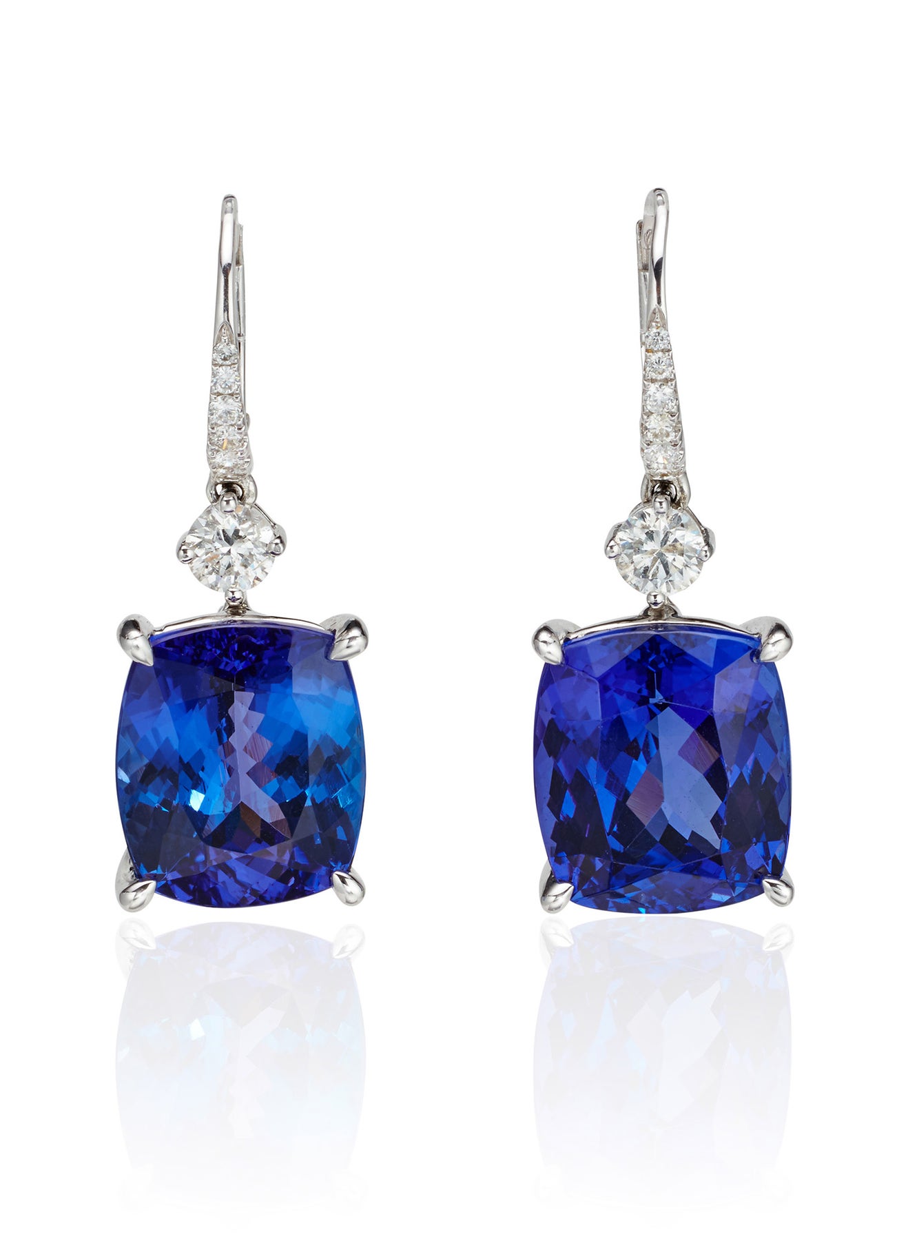 A Pair of Tanzanite, Diamond and Gold Earrings