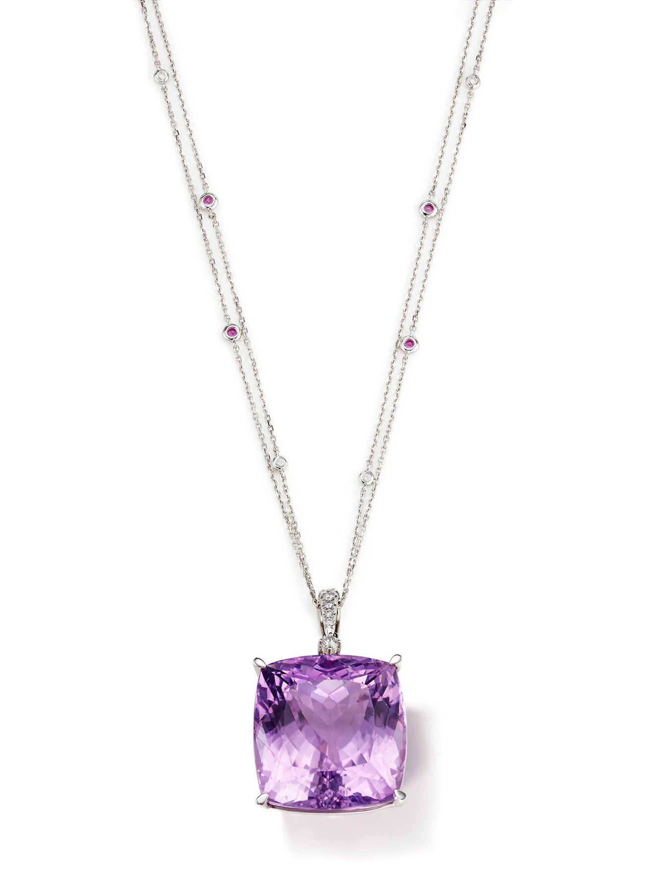 A Kunzite, Diamond, Colored Sapphire and Gold Pendant Necklace