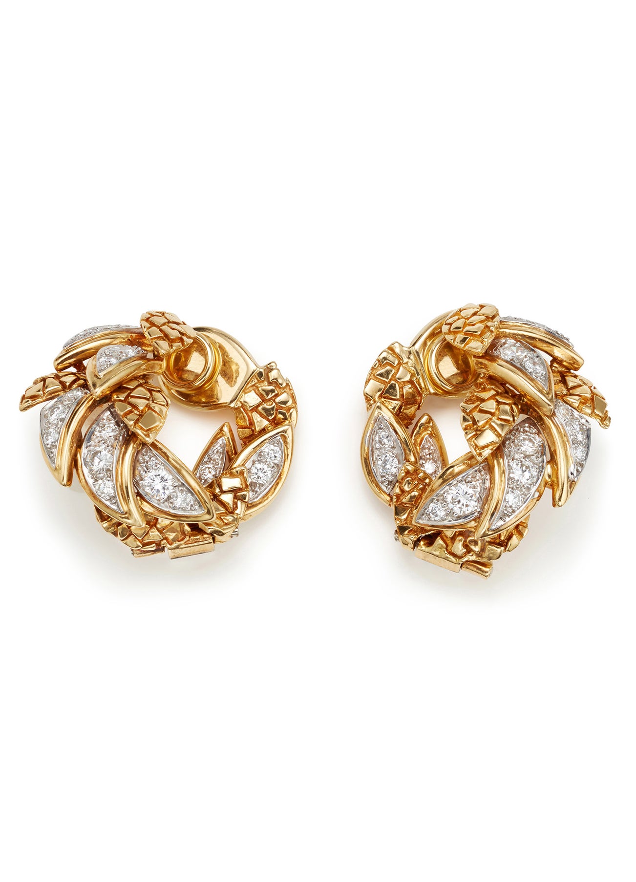 A Pair of Diamond and Gold Earrings