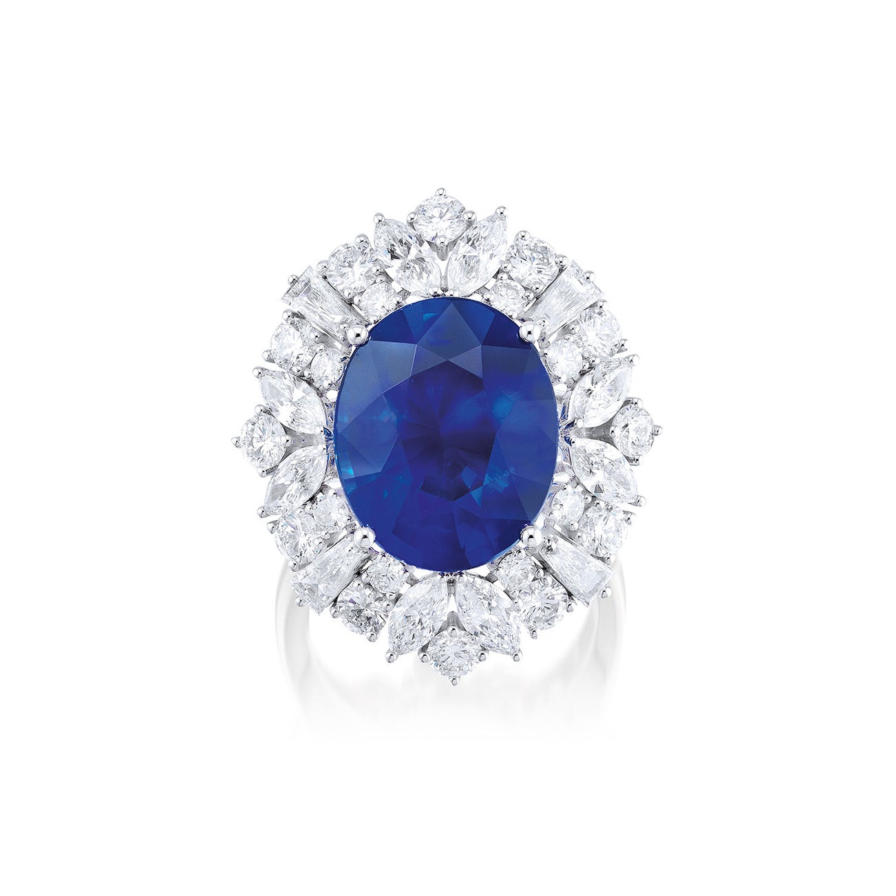 One oval-shaped sapphire, 10.60 caratsVariously cut diamond surround, 3.20 carats total18K white gold附瑞士GRS證書