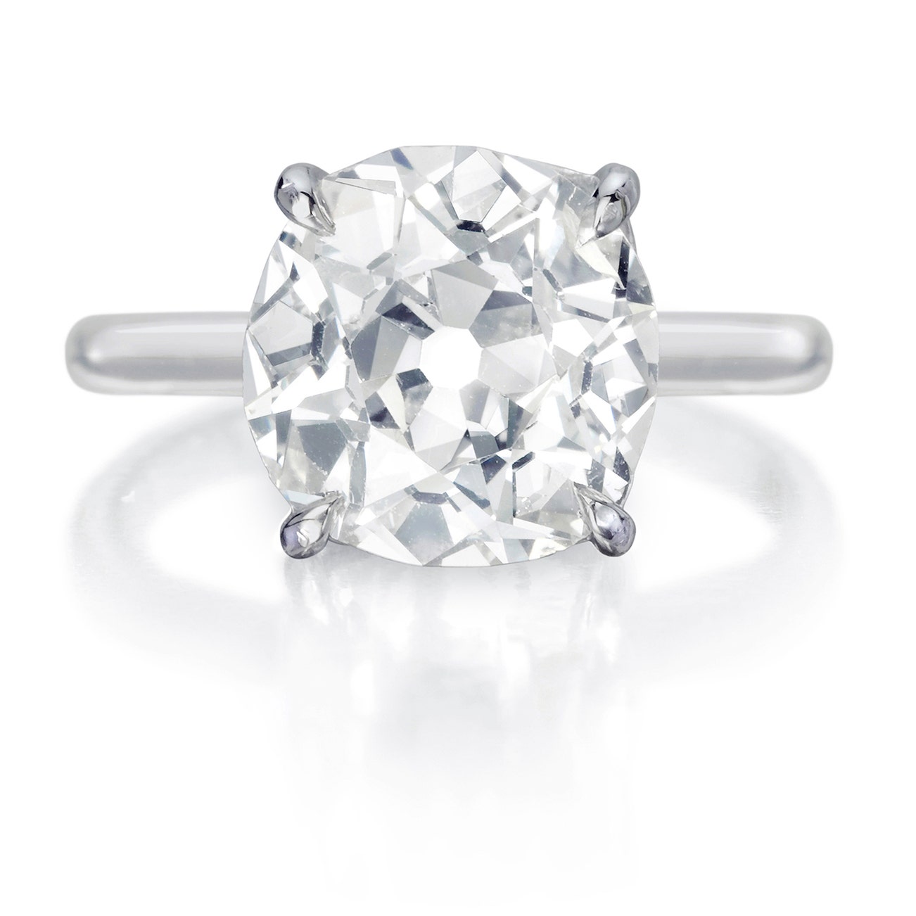 Set with a cushion-shaped diamond weighing approximately 3.24 carats,