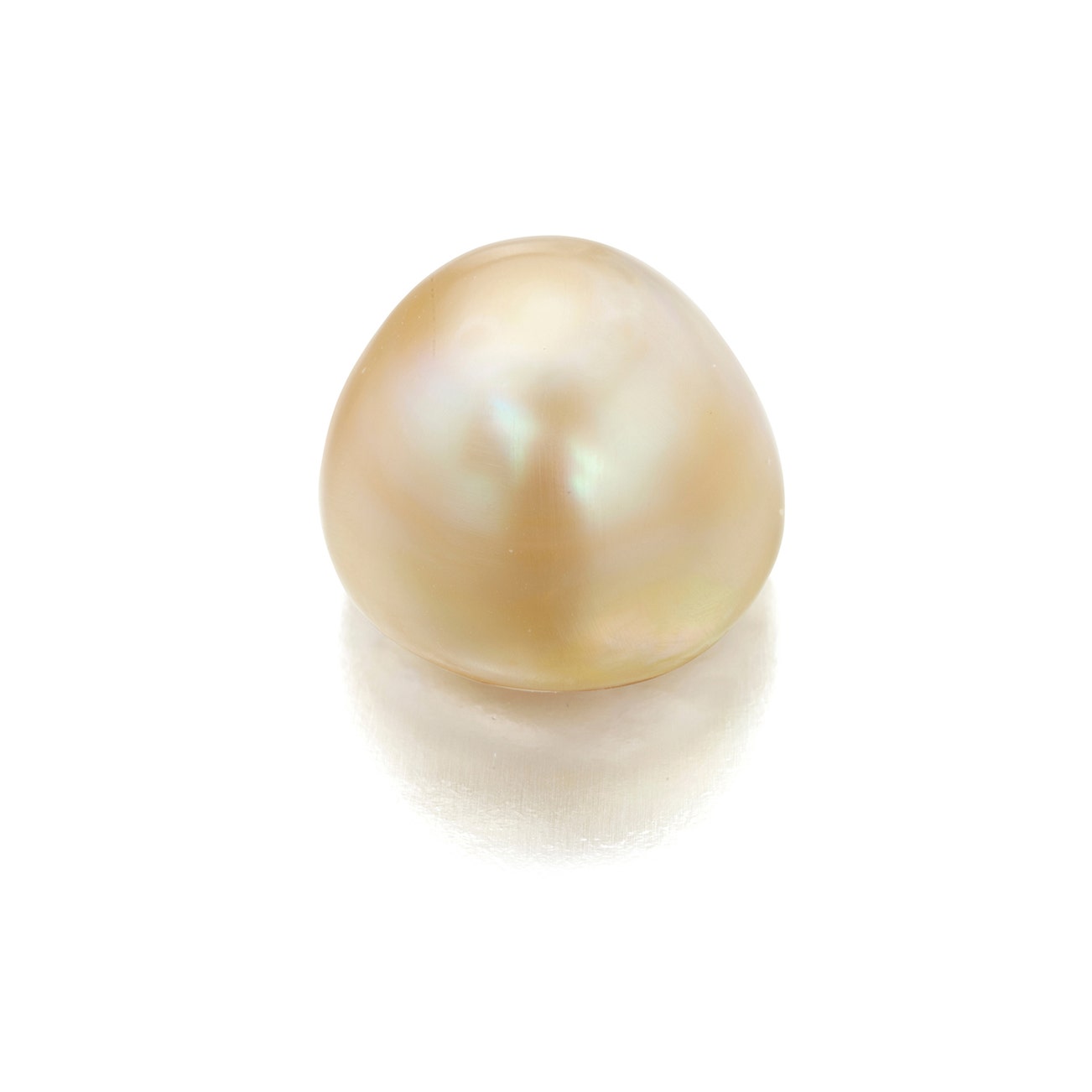 The button-shaped natural yellow pearl weighing 15.52 carats and measuring approximately 13.8 - 14.5 x 10.3 mm.