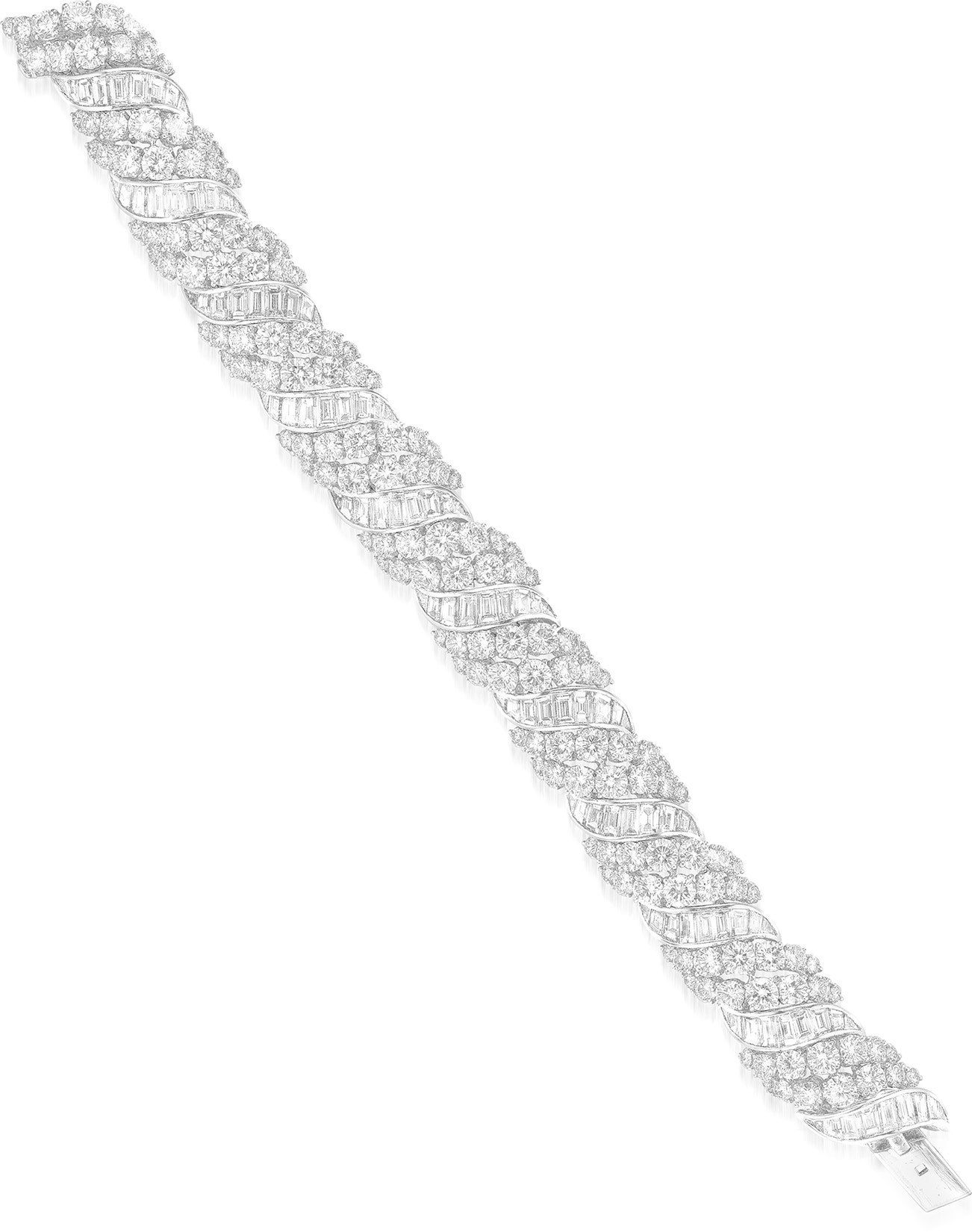 The flexible bombé design bracelet set with brilliant- and calibré-cut diamonds,