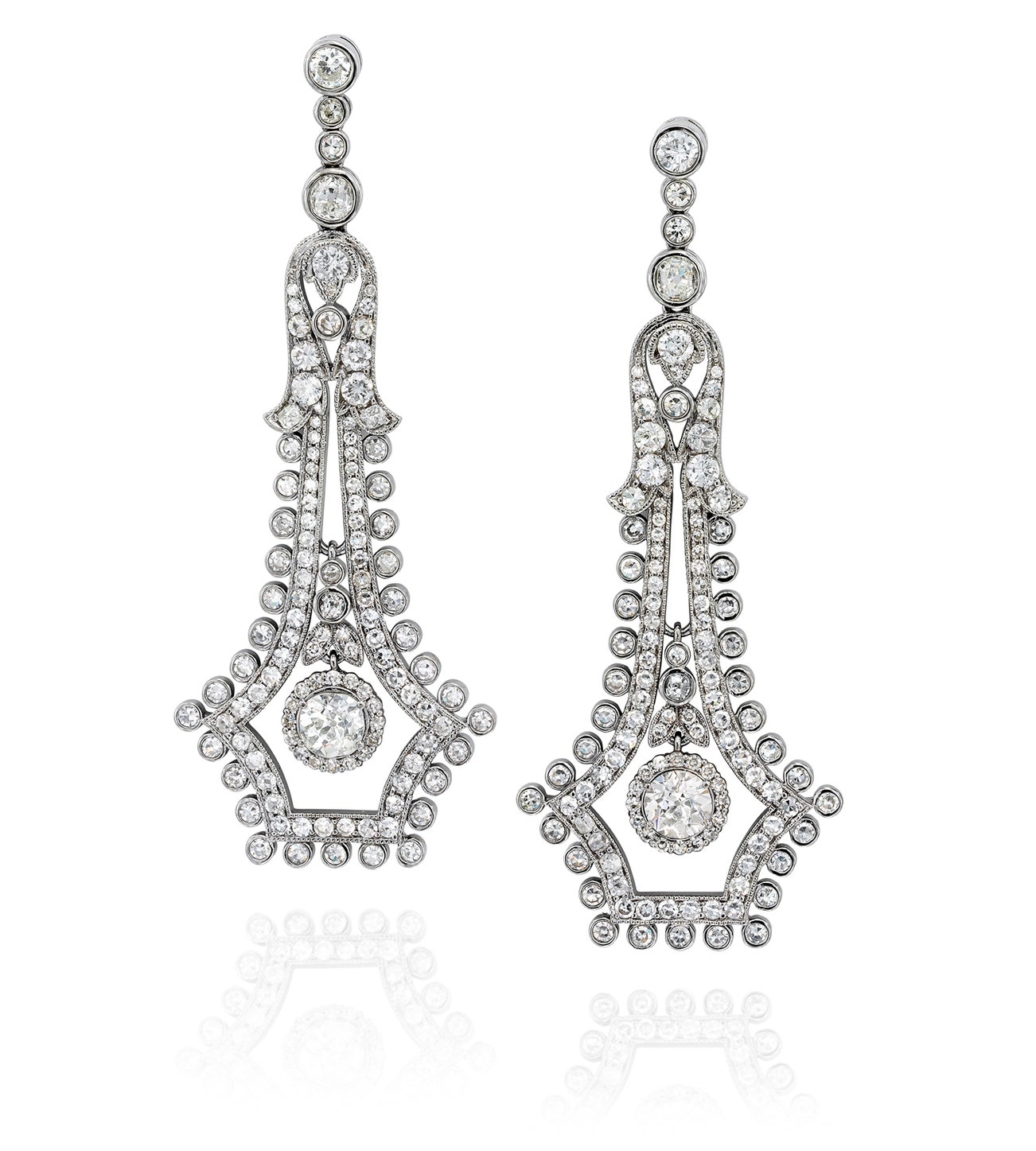 Of chandelier design, set with circular-, and brilliant-cut diamonds,