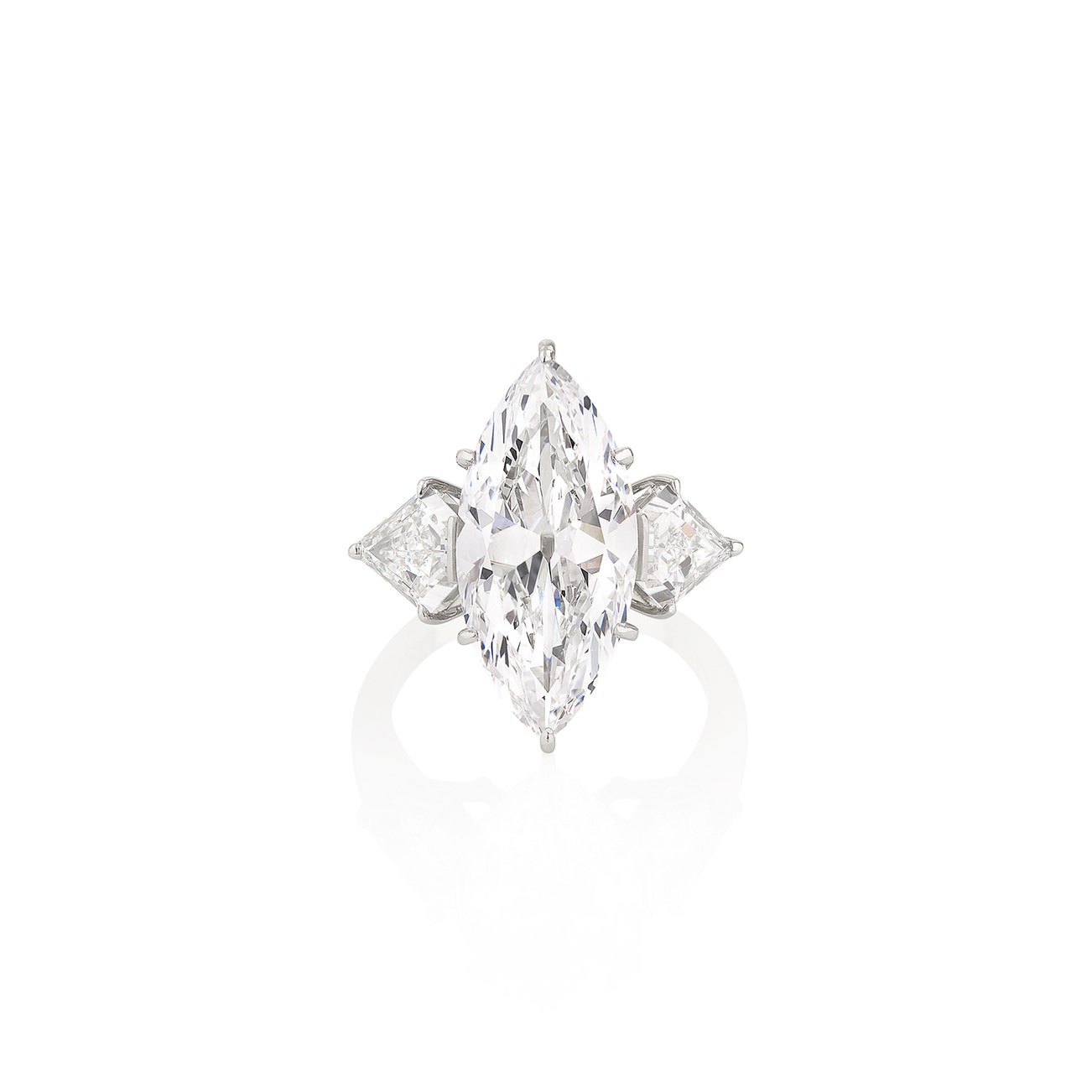 Set with a marquise-shaped diamond weighing 7.00 carats, within modified kite-shaped diamond shoulders, size 54.
