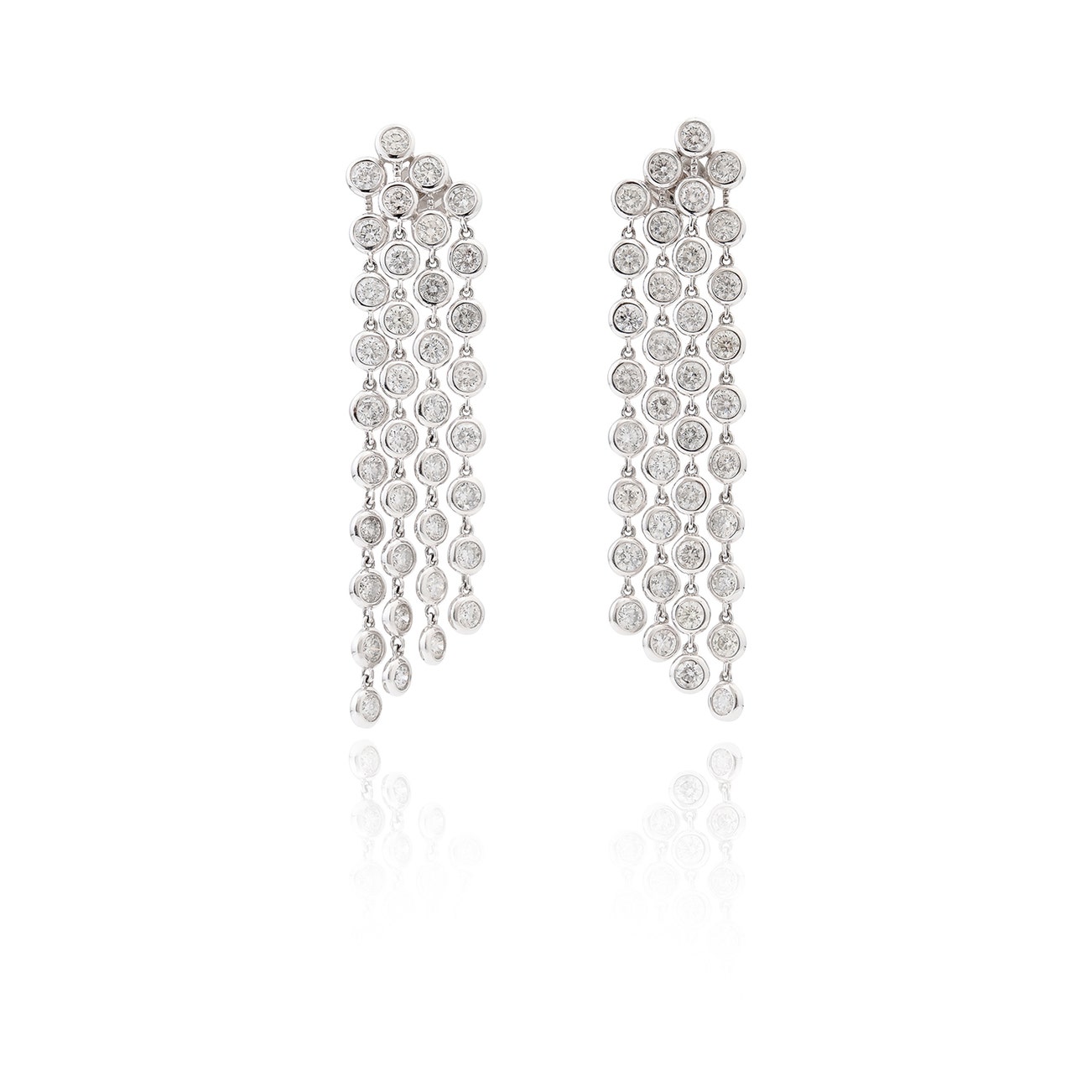 Each suspending an articulated cascade of collet-set brilliant-cut diamonds and a similarly-set diamond top, length approximately 61mm, post and butterfly fittings.