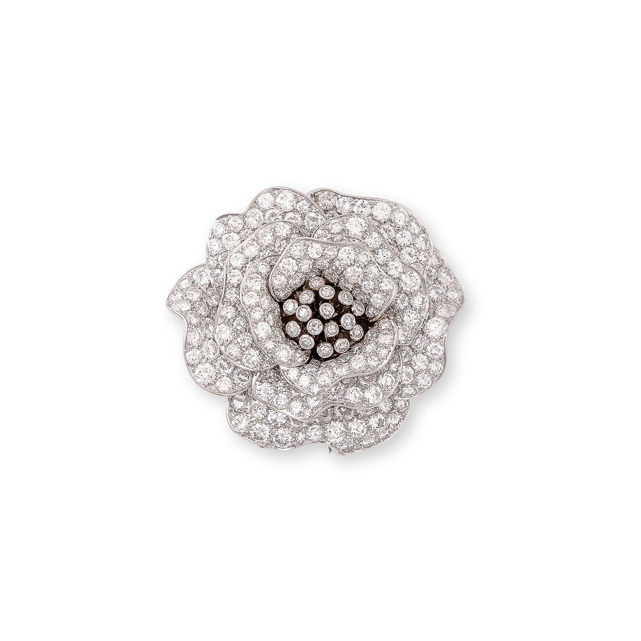 Modelled as a flower, set throughout with brilliant- and single-cut diamonds,