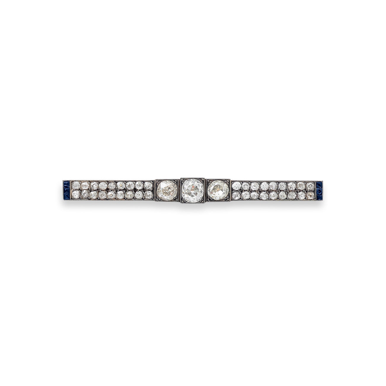 Set with circular-cut diamonds and calibré-cut sapphires,