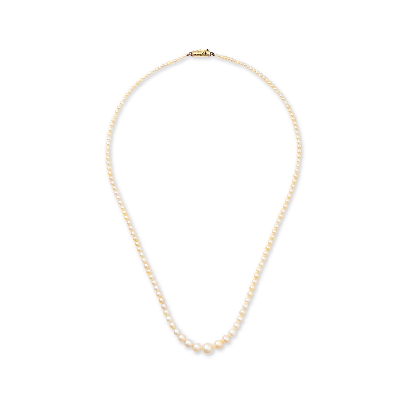 Composed of a single row of graduated natural pearls measuring from approximately 2.03mm to 7.20mm, length approximately 468mm.