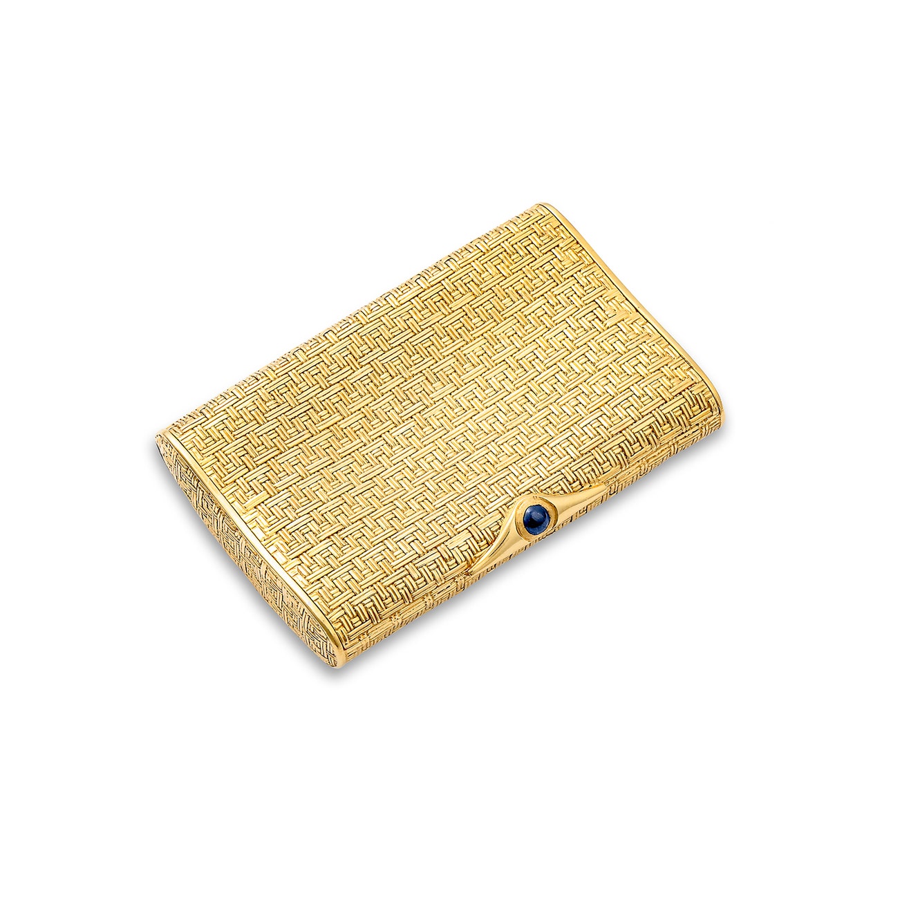 Of basket weave design, the thumbpiece set with a cabochon sapphire, measuring approximately 57 x 90mm.