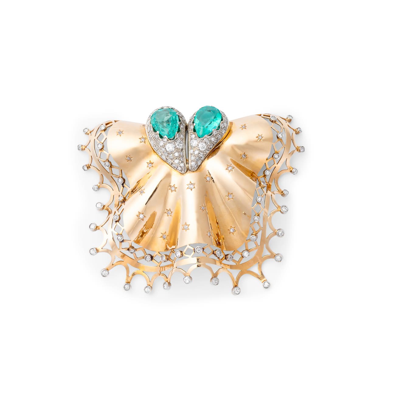 Gold, emerald and diamond brooch