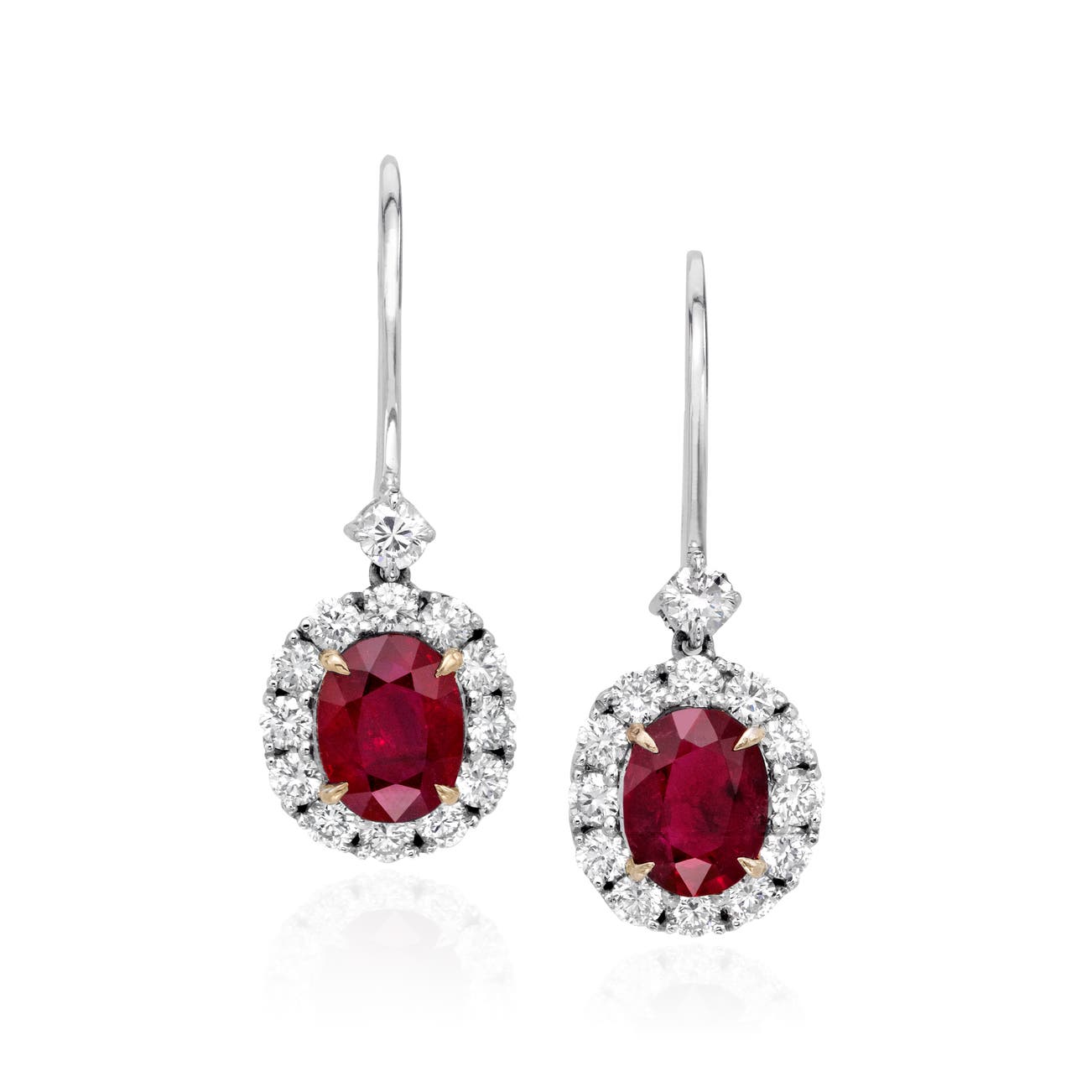 Each set with an oval ruby, accented by brilliant-cut diamonds, mounted in 18k white and yellow gold, length approximately 1 inch.