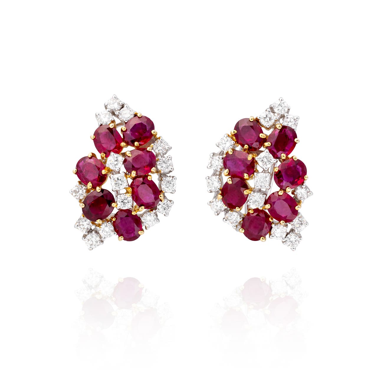 Each set with oval rubies and highlighted with brilliant-cut diamonds, length 30mm, post and hinged-back fittings.