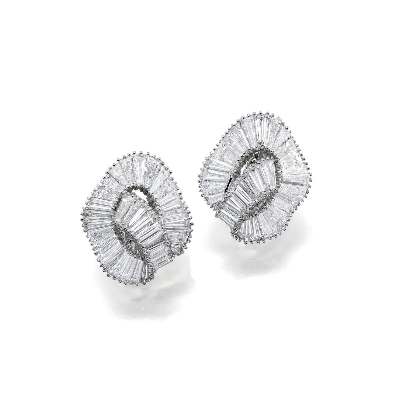 mounted in 18k white gold, measuring approximately 1 x 1 inch; ear clips with collapsible posts.