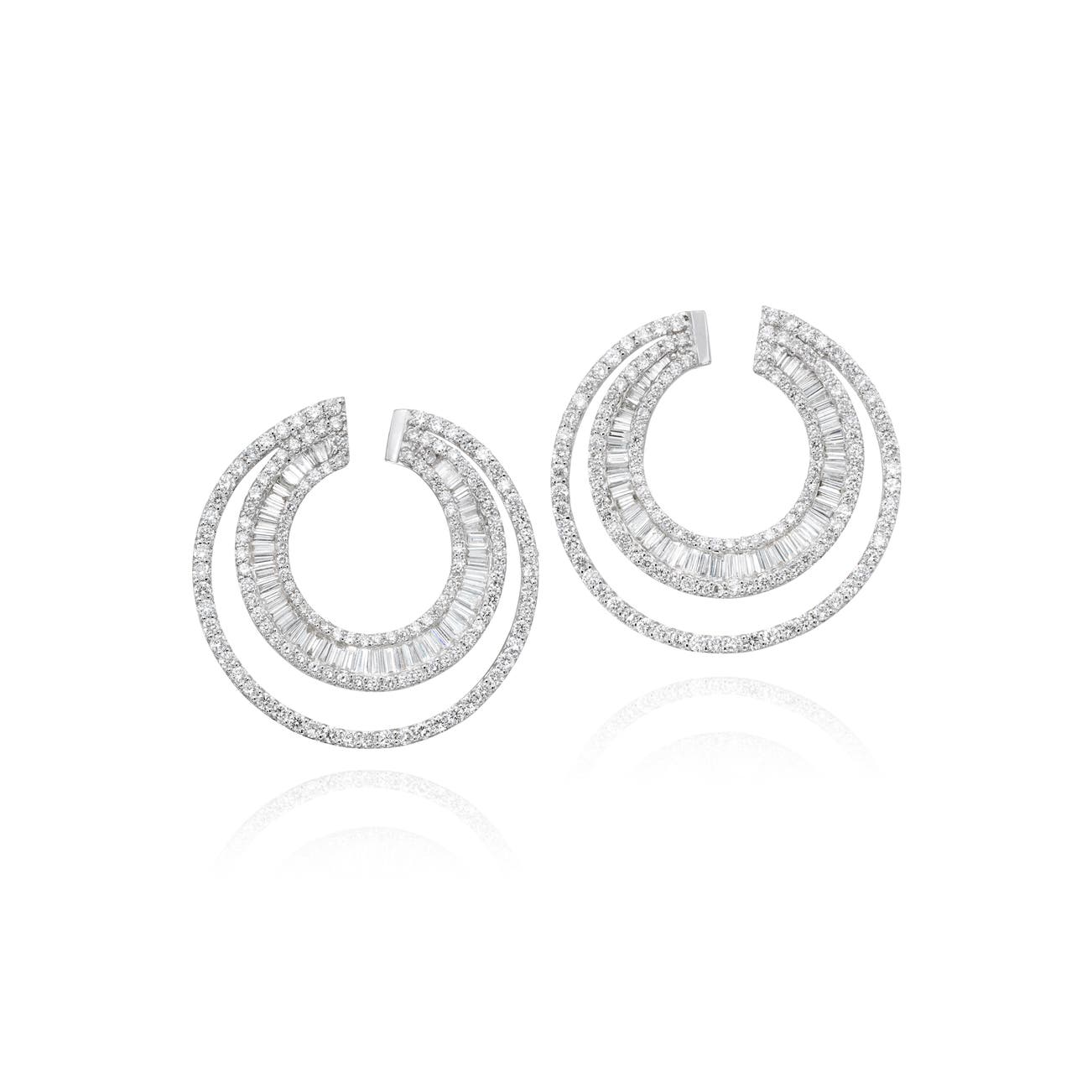 Of hoop design, set throughout with brilliant-cut and baguette diamonds,