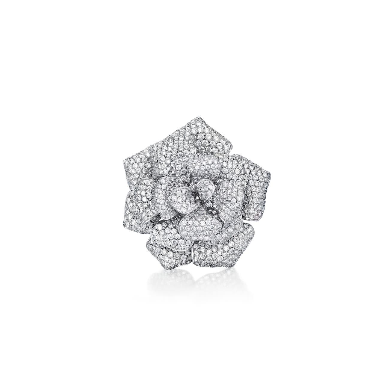 Designed as a flower, set throughout with brilliant-cut diamonds,