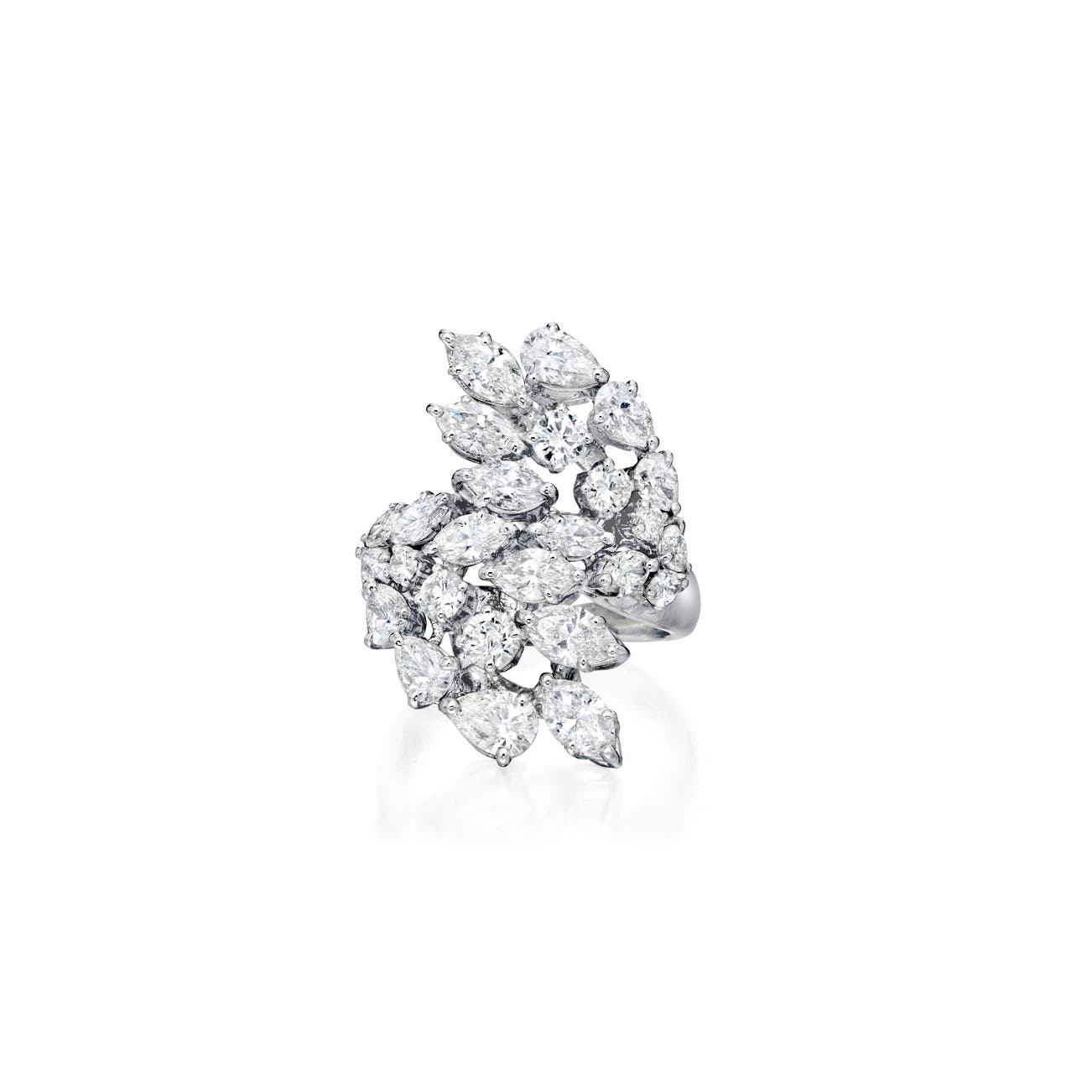 Set with marquise-, pear-shaped and brilliant-cut diamonds,