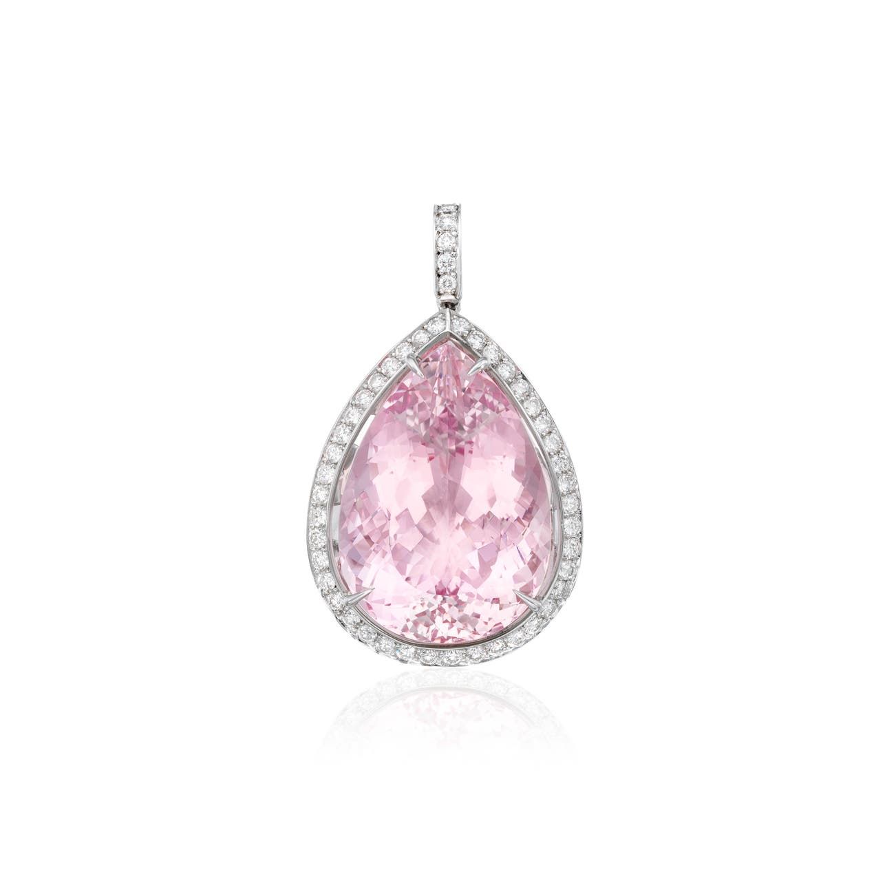 Set with a pear-shaped morganite, accented by brilliant-cut diamonds,