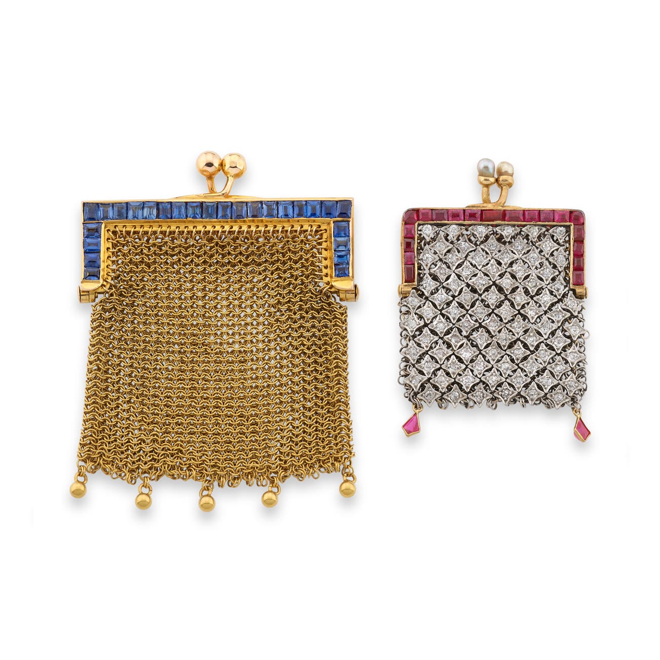 K金配藍寶石錢包與紅寶石、珍珠配鑽石錢包,19世紀晚期