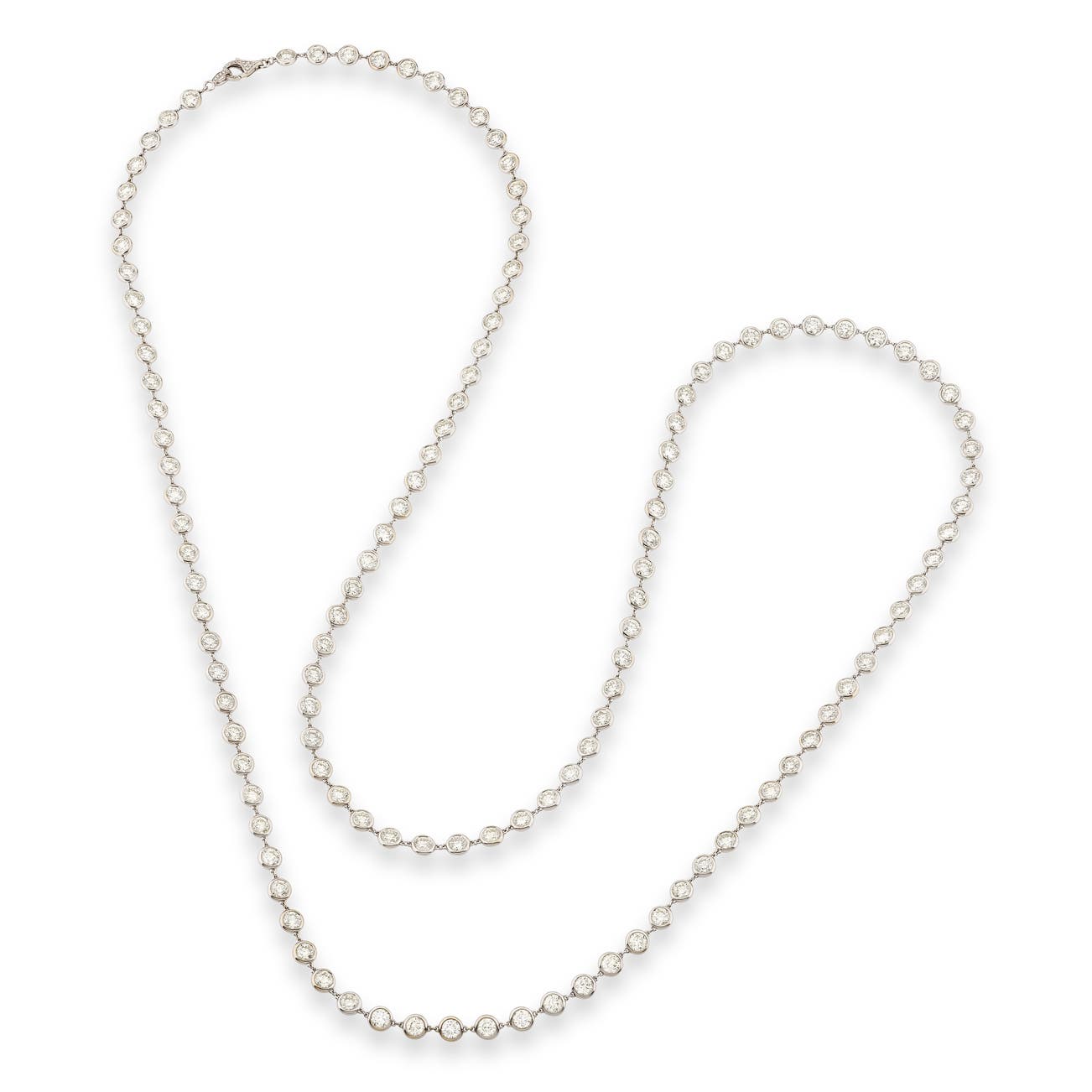 Set with circular-cut diamonds, the clasp and bail with diamond accents, length approximately 1140mm.